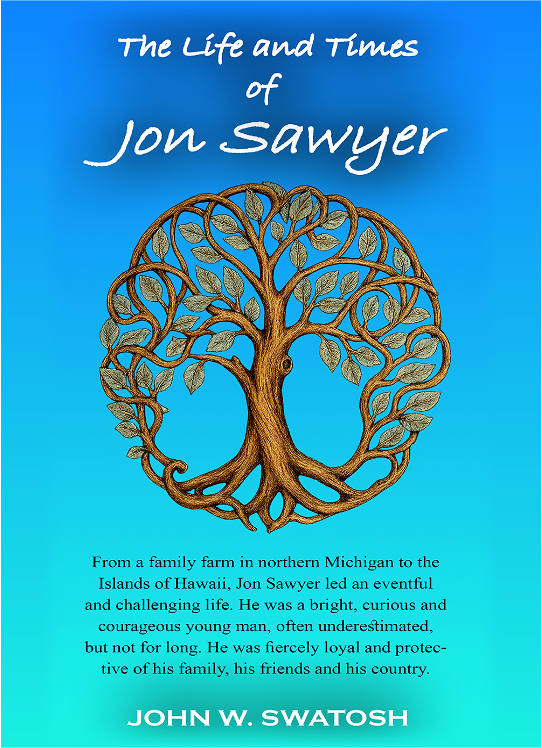 From a family farm in northern Michigan to the Islands of Hawaii, Jon Sawyer led an eventful and challenging life. He was a bright, curious and courageous young man, often underestimated, but not for long. He was fiercely loyal and protec-tive of his family, his friends and his country.
